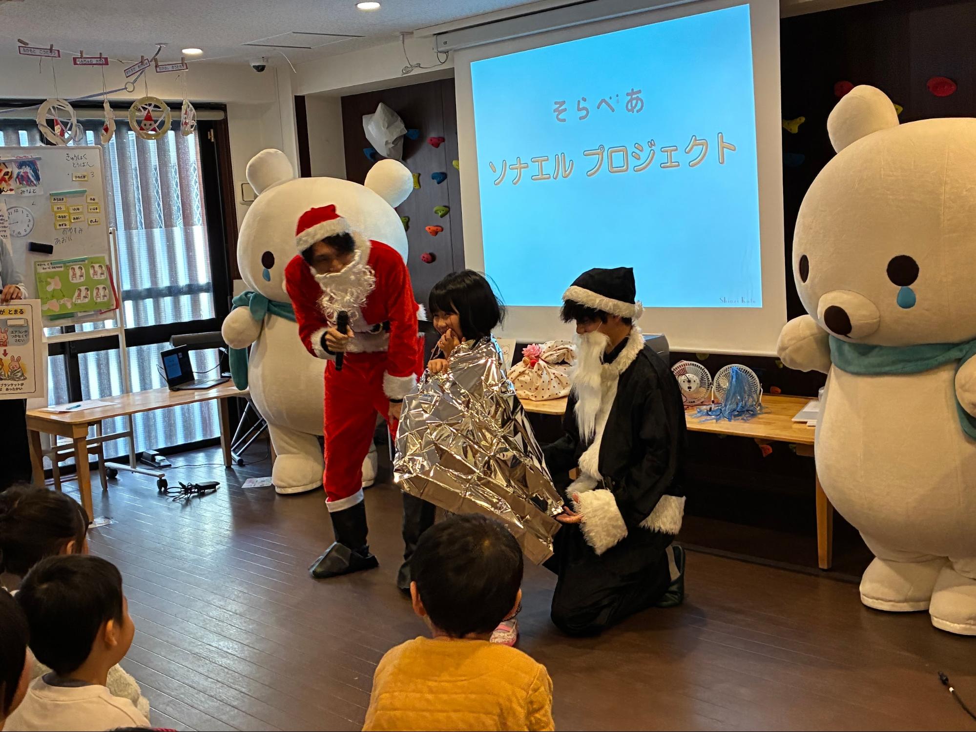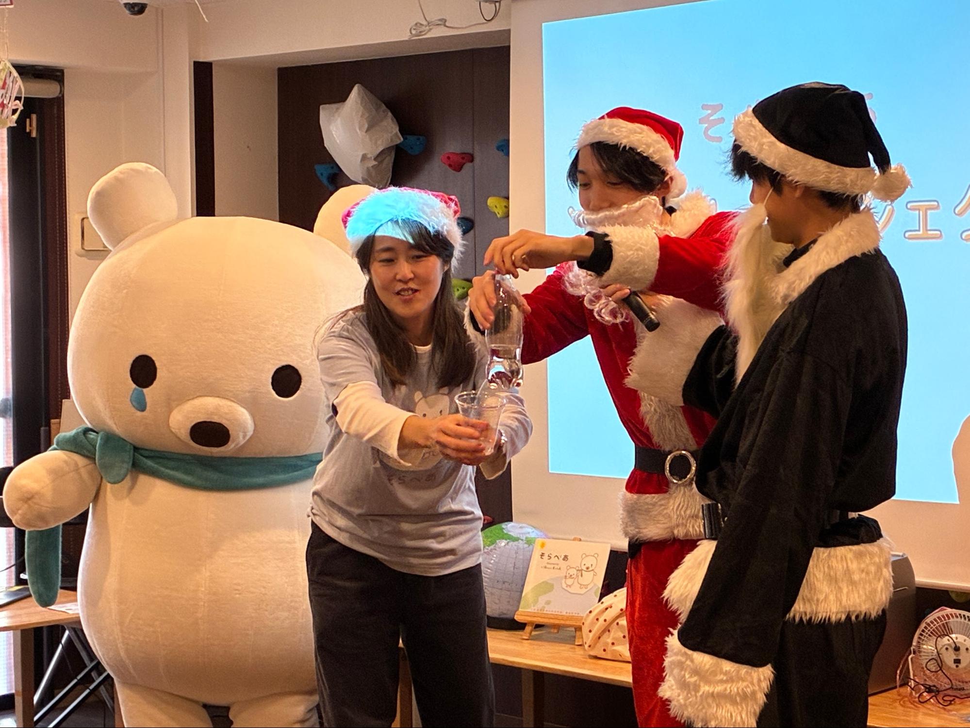 お互いサンタの衣装を着てワークショップを盛り上げることに!